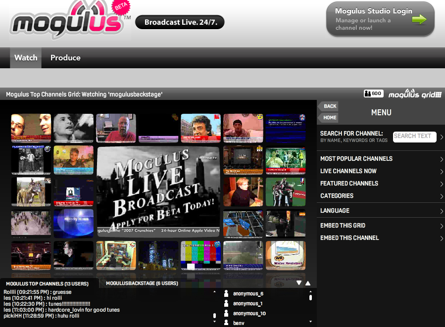 Zumindest kann mit mogulus jeder seinen TV-Sender direkt aufbauen und somit sein eigener Medienmogul(us) werden. ;-) Schöne Sache das, und so wie im Bild sieht das dann aus.
