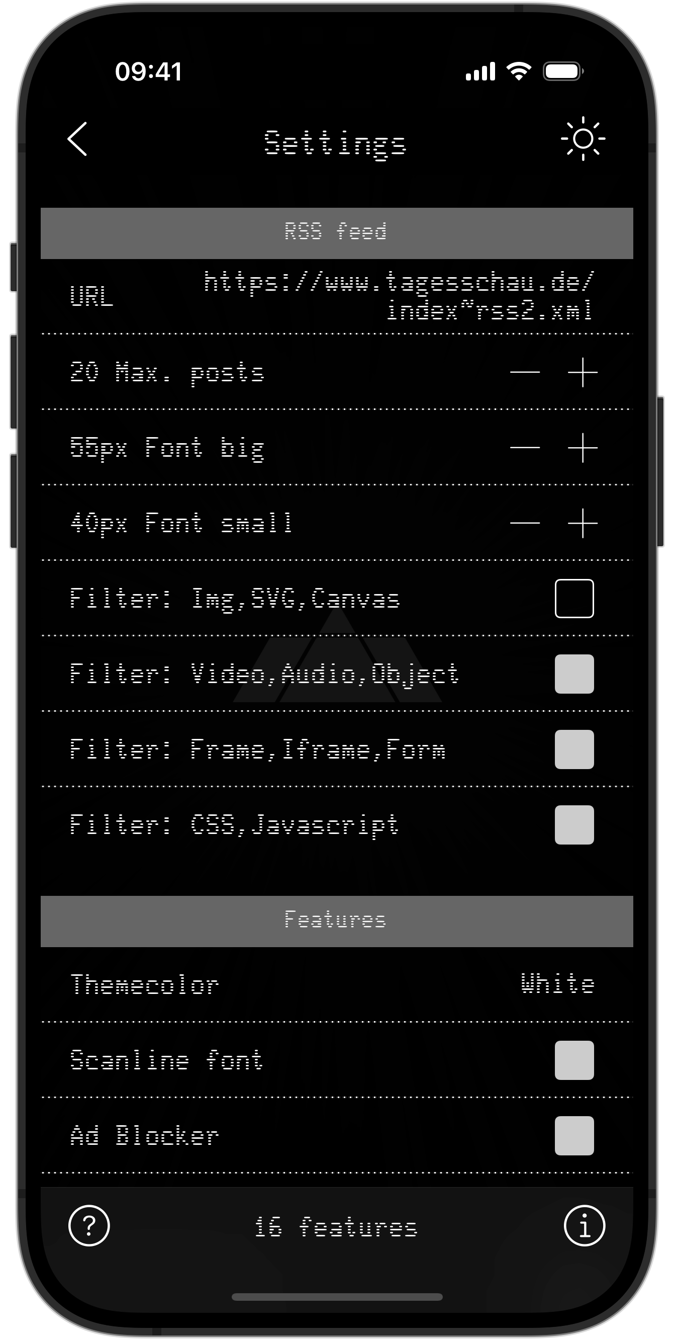 Es entstand die 0xfefe App, die App im Store wurde also auch umbenannt von Fefe in 0xfefe. Ziel der neuen Version war zugleich, die App nicht mehr ausschließlich an Fefe’s Blog zu koppeln. Stattdessen sollte die App beliebige RSS-Feeds als Quelle nutzen können. Diese App war daher in der Lage, jede beliebige RSS-Feed-URL als Konfiguration zu verwenden und den Feed dahinter anzuzeigen. Das ließ sich über die iOS Settings konfigurieren und war auch meine technische Rückversicherung, falls Apple die App wegen der Inhalte ablehnen sollte. Wär die App abgelehnt worden, hätte ich einfach einen anderen RSS-Feed integriert und den Nutzern einen Hinweis eingeblendet, wie sie ihr Lieblingsblog selbst konfigurieren könnten.